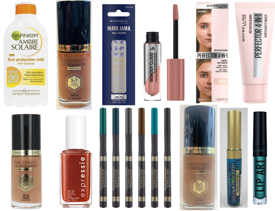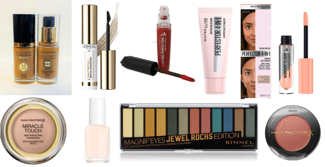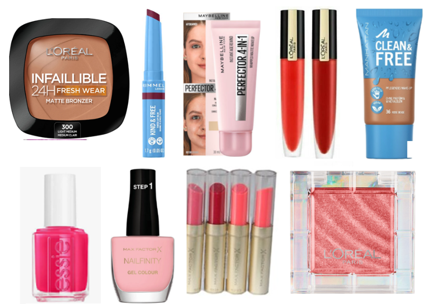 Manhattan – L'Oréal – Max Factor – Maybellin Rimmel – Sally Hansen – Essie – Sanctuary Spa – Covergirl – P2