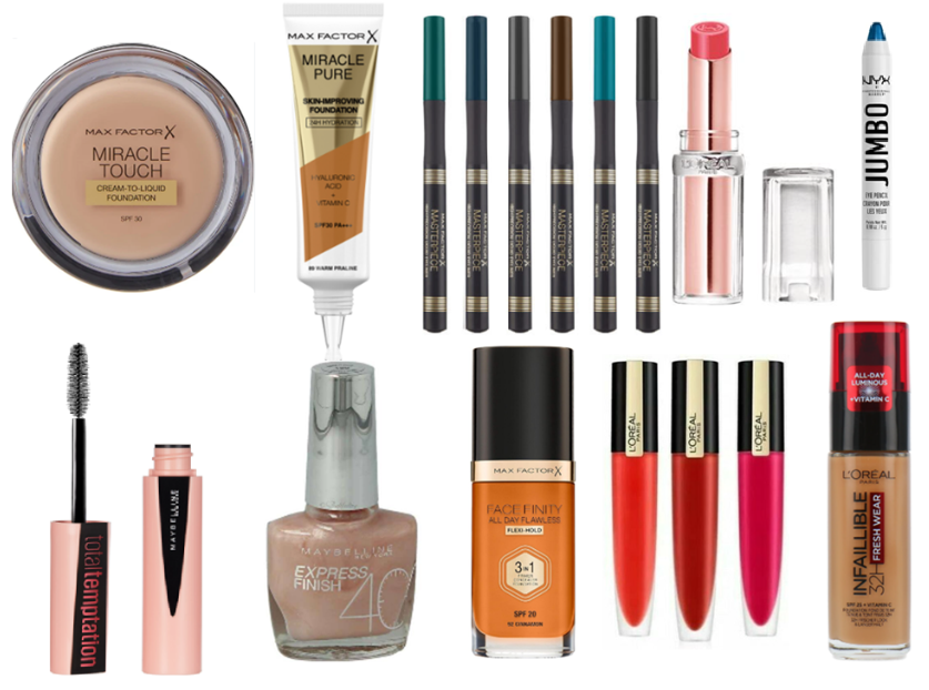 👜︎ الماركة: Bourjois، Charles Worthington، Covergirl، Essie، Fudge Professional، Garnier، L’Oréal، Manhattan، Max Factor، Maybelline، Miss Sporty، NYX، Rimmel، Sally Hansen